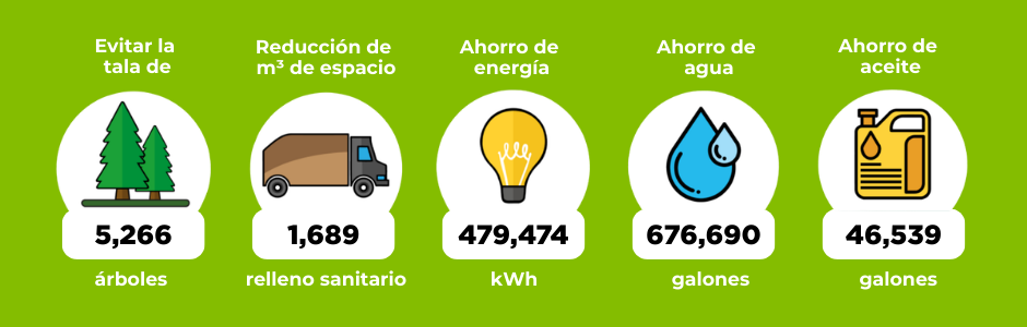 Este volumen proviene de una gestión múltiple de materiales como papel, cartón, RAEE y llantas, todos reincorporados a la cadena formal del reciclaje.​